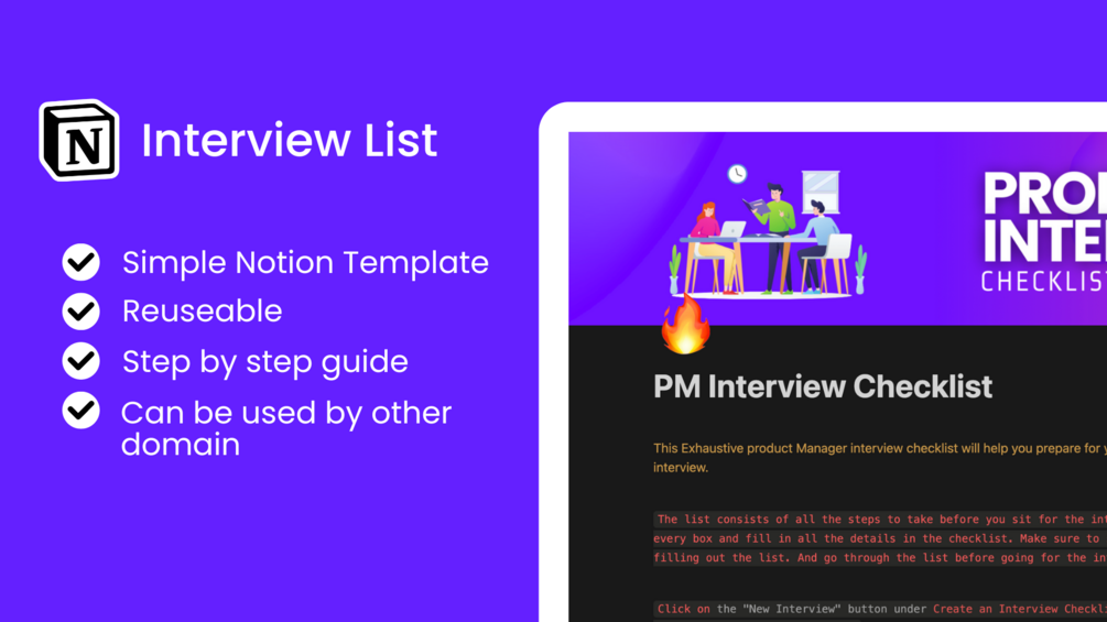 Unlock your path to success in product management with our meticulously crafted PM Interview Checklist Notion Template. Whether you're preparing for your very first product interview or looking to refine your approach, this template is your ultimate guide to ensuring you're fully prepared, confident, and ready to impress.